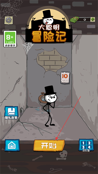 1、進入大聰明冒險記主界面后,點擊開始按鈕,即可進入游戲的關卡挑戰(zhàn)流程。