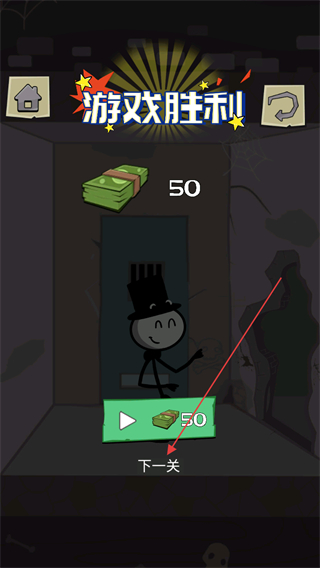 4、達成關卡目標后進入游戲勝利界面,點擊下一關按鈕,可繼續(xù)挑戰(zhàn)后續(xù)關卡并獲取對應獎勵。