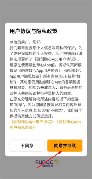 1、在使用協(xié)議隱私政策彈窗中點(diǎn)擊同意并繼續(xù)按鈕,進(jìn)入登錄頁面。