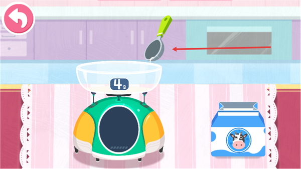 2、用勺子添加材料到秤上容器,讓秤顯示4g,繼續(xù)制作流程。