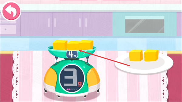 4、將方塊食材放入秤上容器,讓秤顯示4g,完成該步材料準(zhǔn)備。