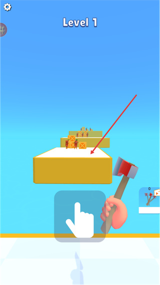 3、處于Level1關(guān)卡時(shí),操作斧頭點(diǎn)擊樹樁類目標(biāo),將其擊碎清除障礙,進(jìn)一步推進(jìn)關(guān)卡的進(jìn)度。