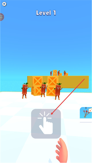1、進(jìn)入Level1關(guān)卡后,按照手指提示操作,點(diǎn)擊目標(biāo)區(qū)域前往平臺(tái),推進(jìn)關(guān)卡進(jìn)程。