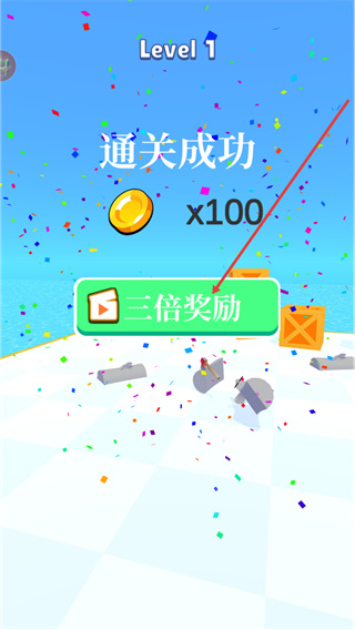 4、達(dá)成通關(guān)成功后,可獲得100金幣獎(jiǎng)勵(lì),點(diǎn)擊三倍獎(jiǎng)勵(lì)按鈕能獲取更多獎(jiǎng)勵(lì),完成該關(guān)卡的結(jié)算環(huán)節(jié)。