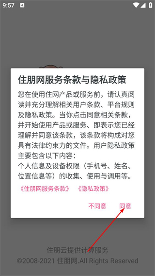 1、閱讀服務(wù)條款與隱私政策,點(diǎn)擊彈窗中的同意,以使用服務(wù)。