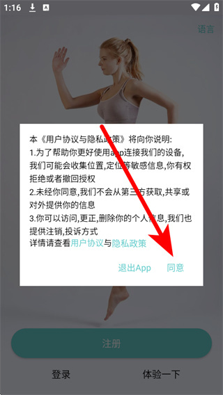 1、打開Fitdays,在彈窗中點擊同意,進入應(yīng)用主界面。