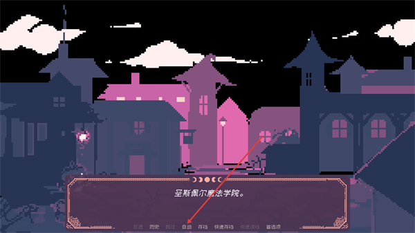 1、當前界面展示的是圣斯佩爾魔法學院的場景,點擊下方的自動按鈕即可自動播放后續(xù)的劇情介紹環(huán)節(jié)。