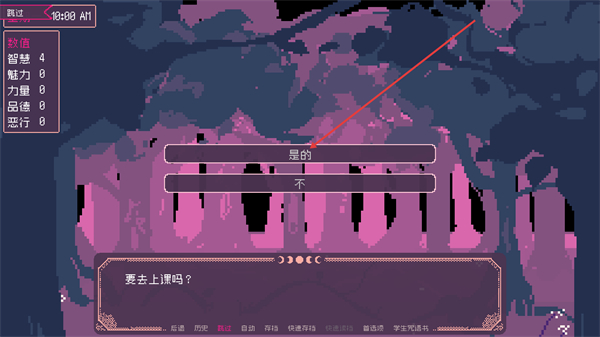 2、界面彈出要去上課嗎的詢問選項,選擇是的選項,就能進入與上課相關(guān)的游戲流程。