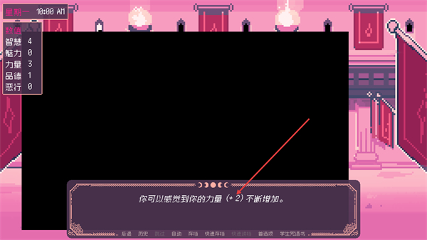 4、操作后進入課堂訓練界面上會出現(xiàn)提示,顯示你的力量屬性數(shù)值成功增加了2點。