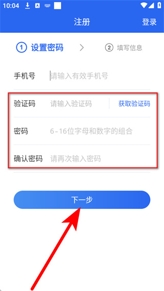 4、將收到的短信驗(yàn)證碼填入欄,再要求填寫信息,填寫信息后,即可完成驛站助手的賬號(hào)注冊(cè)。
