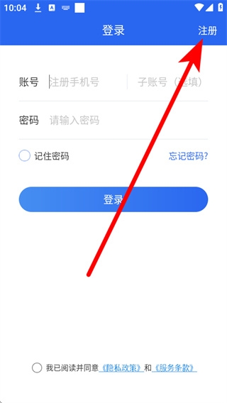 2、在登錄界面點(diǎn)擊右上角的注冊(cè),進(jìn)入賬號(hào)注冊(cè)頁(yè)面。