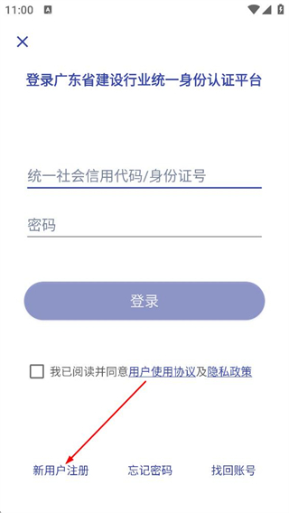1、在平臺(tái)登錄頁,點(diǎn)擊新用戶注冊選項(xiàng),進(jìn)入注冊選擇頁面。