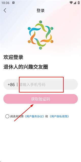 3、在手機(jī)登錄頁面填寫手機(jī)號(hào),勾選協(xié)議后,點(diǎn)擊獲取驗(yàn)證碼。