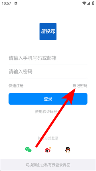1、在建設(shè)云的登錄頁(yè)面,點(diǎn)擊忘記密碼,進(jìn)入手機(jī)找回密碼頁(yè)面。
