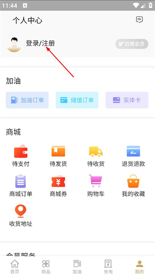 2、在個人中心頁面,點擊登錄/注冊區(qū)域,進入授權登錄頁面。