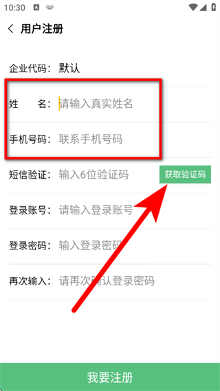 3、在注冊頁面,輸入真實姓名和手機號碼,點擊獲取驗證碼。