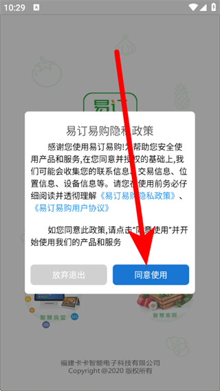 1、打開易訂易購,在彈窗點擊同意使用,進入登錄頁面。