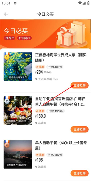 1、在首頁的熱銷排行榜中點擊目標商品,進入今日必買頁面。