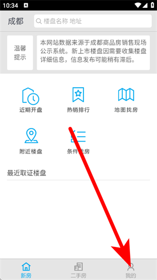 1、打開透明房產(chǎn)網(wǎng),點擊底部我的,進入個人中心頁面。