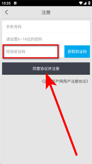 5、輸入短信驗證碼,點擊同意協(xié)議并注冊,完成賬號注冊。