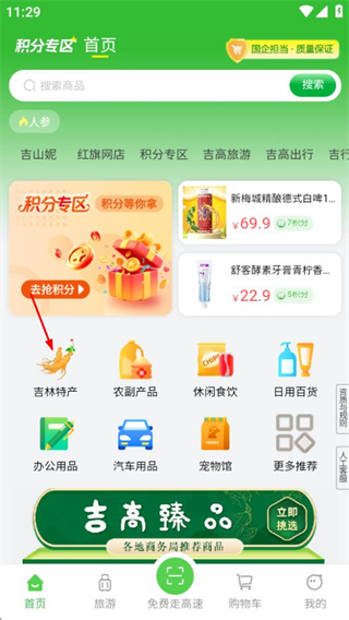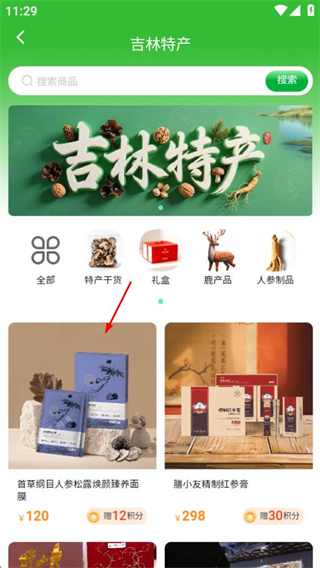 1、在吉高商城首頁,點(diǎn)擊吉林特產(chǎn)可進(jìn)入對應(yīng)分類頁面。