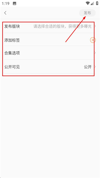 4、發(fā)布設(shè)置頁(yè)面配置相關(guān)選項(xiàng)后點(diǎn)擊發(fā)布即可完成帖子發(fā)布。