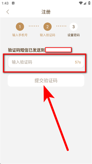 3、在注冊第二步頁面,在輸入框,輸入驗證碼,點擊提交驗證碼。