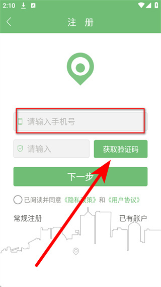 3、在注冊頁面的手機(jī)號框中填寫要注冊的手機(jī)號,然后點(diǎn)擊獲取驗(yàn)證碼獲取短信驗(yàn)證碼。
