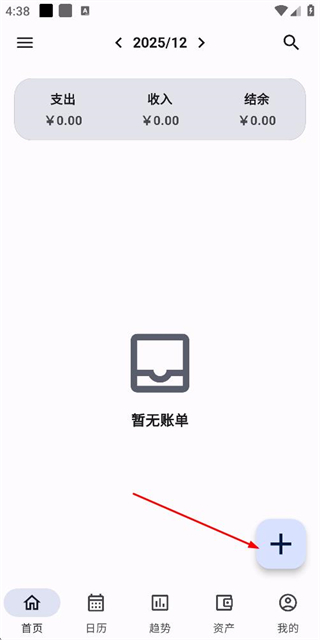 1、在記賬首頁(yè)點(diǎn)擊右下角的加號(hào)按鈕,進(jìn)入記賬分類(lèi)選擇頁(yè)面。
