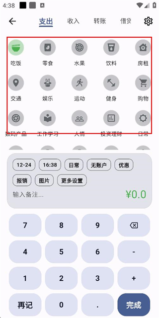 根據(jù)實(shí)際需求,新增個(gè)性化記賬分類(lèi)。