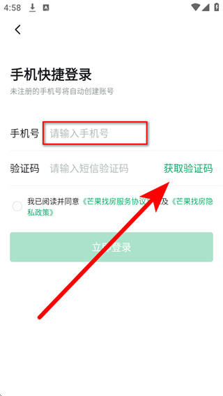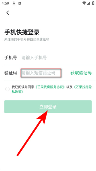 4、將收到的短信驗證碼填入驗證碼框,勾選相關(guān)協(xié)議后,點擊立即登錄完成賬號登錄。