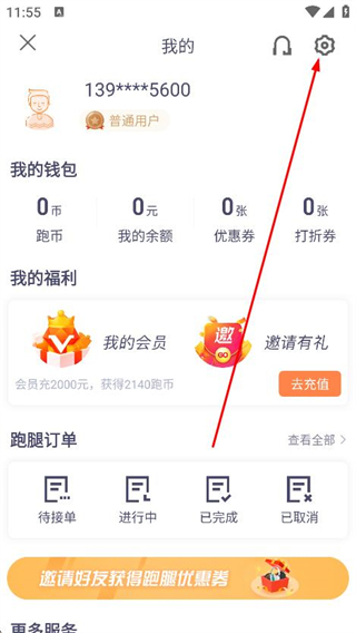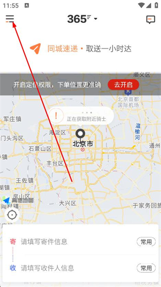 1、打開365跑腿網(wǎng)app,點(diǎn)擊左上角的菜單圖標(biāo)。