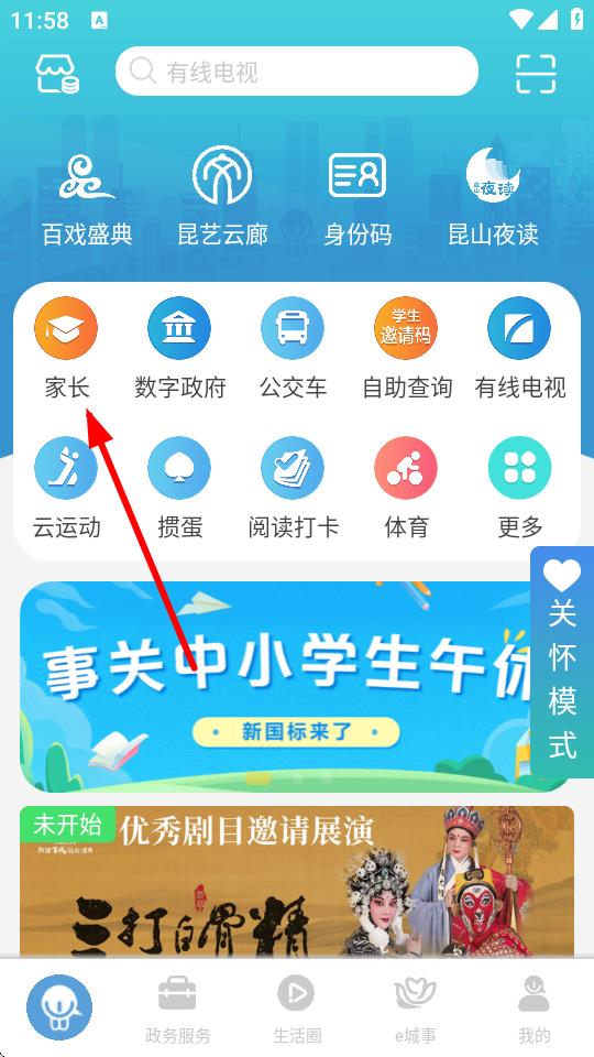 2、在首頁(yè)界面里,找到并點(diǎn)擊家長(zhǎng)功能圖標(biāo),進(jìn)入教育相關(guān)頁(yè)面。