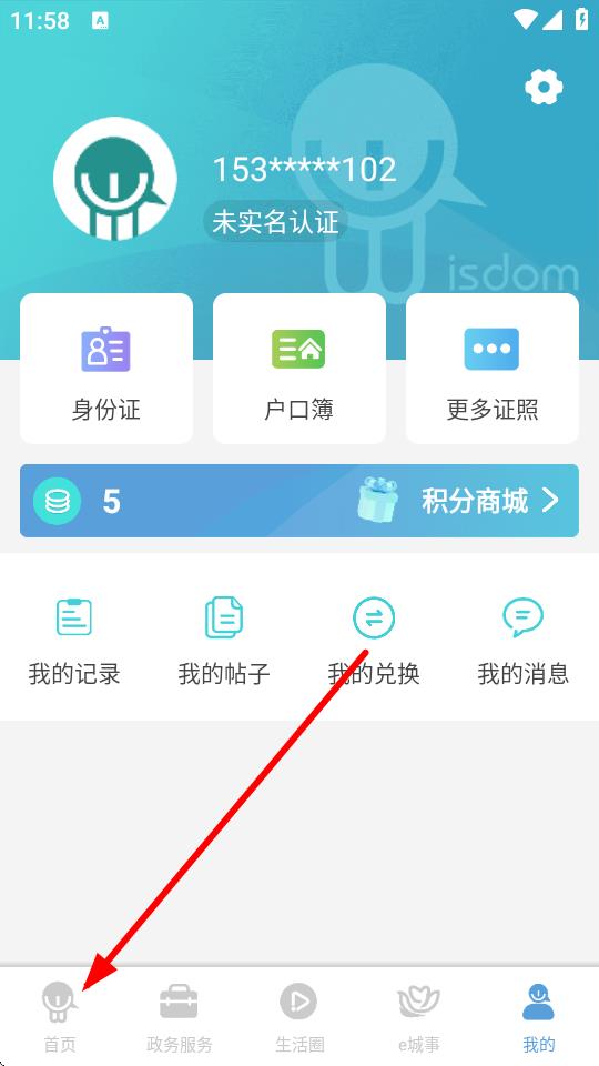 1、打開智慧昆山APP,點(diǎn)擊底部導(dǎo)航欄中的首頁(yè)選項(xiàng)進(jìn)入首頁(yè)界面。