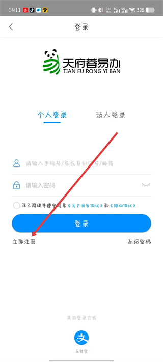 3、點(diǎn)擊立即注冊選項(xiàng),進(jìn)入個(gè)人注冊頁面。