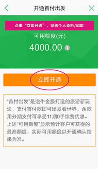 途牛金服旅游網(wǎng)全面開放分期出游服務(wù),正式上線旅游分期付款業(yè)務(wù):首付出發(fā),總計(jì)預(yù)授信額度達(dá)70億元。首批公測名額超過百萬,通過該批次途牛首付出發(fā)資格審核的用戶,最高可獲2.5萬元信用額度。首付出發(fā)是途牛金服打造的旅游新玩法,支付首付即可出發(fā)看世界,余款用分期支付可享受11期0手續(xù)費(fèi)優(yōu)惠。途牛金服首付出發(fā)就是要幫助年輕人,在時(shí)間比較充裕的年輕時(shí)代,與好朋友一起出發(fā),體會(huì)世界、開闊眼界,讓說走就走的旅游不在有壓力!