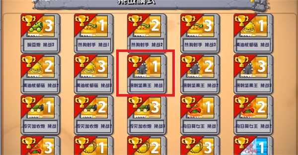 2、在挑戰(zhàn)模式之中,我們想要獲得什么金卡,就直接點(diǎn)擊【金卡】進(jìn)入到金卡植物的挑戰(zhàn)關(guān)卡之中;