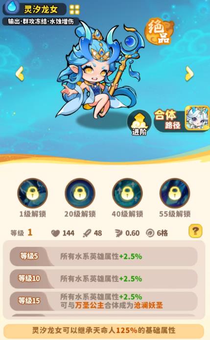 5、靈汐龍女攻擊時(shí)有40%概率降下暴雨對(duì)范圍內(nèi)敵人每秒造成100%傷害持續(xù)2秒高頻率范圍傷害適合快速清理小怪。
