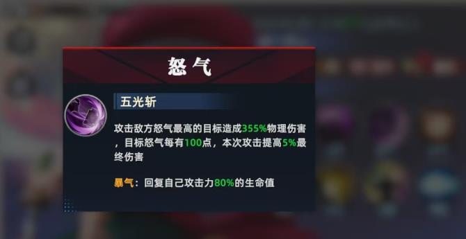 2、爆氣狀態(tài)強化創(chuàng)傷效果讓同排敵人降低最終免傷,怒氣技能鎖定敵方怒氣最高目標造成高額物理傷害,目標怒氣每100點攻擊最終傷害提高5%爆氣時還能額外恢復生命。