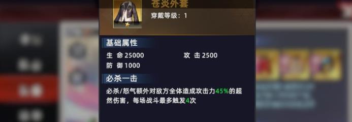 3、斗魂影響下戰(zhàn)斗開始直接獲600點額外怒氣可開局打出爆發(fā)輸出,裝備推薦蒼炎外套,使必殺和怒氣攻擊對敵方全體造成額外傷害,并依敵方正面效果數量提升戰(zhàn)力。
