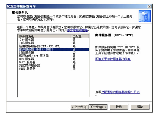 郵件服務(wù)器的安裝其實(shí)就是PO3、SMTP服務(wù)相關(guān)組件的安裝,本文主要為大家介紹如何利用“配置您的服務(wù)器向?qū)?rdquo;進(jìn)行安裝郵件服務(wù)器。